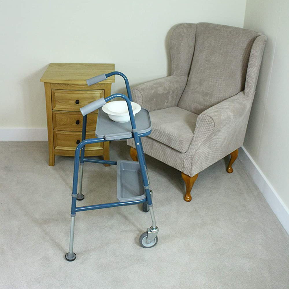 Make life easier with the Duo 200 Walking Trolley designed to carry items for you and support you whilst you walk. Made from robust steel with easy to manoeuvre castors, the height adjustable frame has unique dual action sliders, which have a curved nylon base. This allows free movement when the trolley is pushed forward, whilst the gripped section creates stability and prevents the trolley from moving if you put your weight through the frame, eliminating the need for hand brakes. With space for a plate and a drink on the top tray, the trolley can help you to transfer your meals and snacks from the kitchen to somewhere you can sit and eat comfortably.