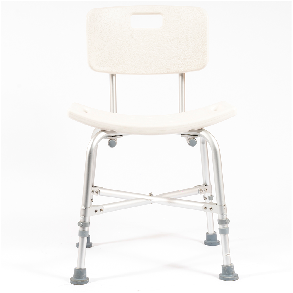 Lightweight height adjustable shower chair features non rusting aluminium frame and durable moulded plastic seat and back. Enables user to sit whilst showering. Supplied with rubber ferrules for extra stability. Requires minor assembly.